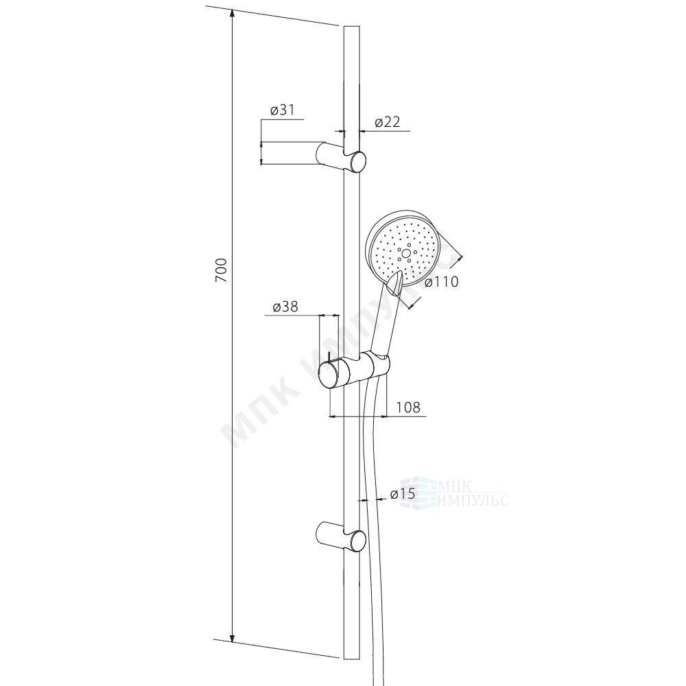 Гарнитур душевой хром Origin One Damixa 918100000