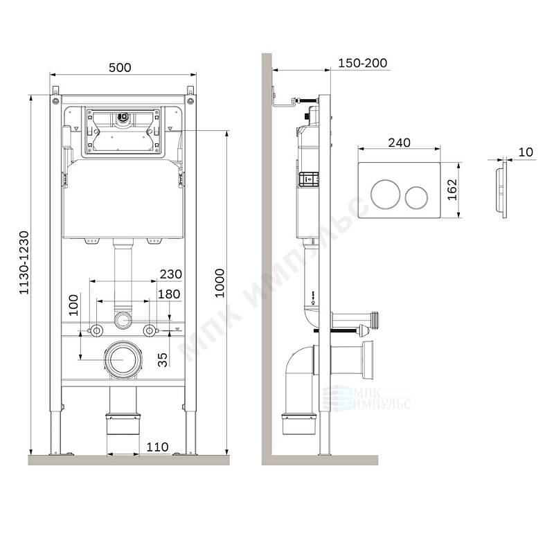 Инсталляция для подвесного унитаза с кнопкой смыва белая глянцевая PrimeFit PrimeFit L AM.PM I012709.0101