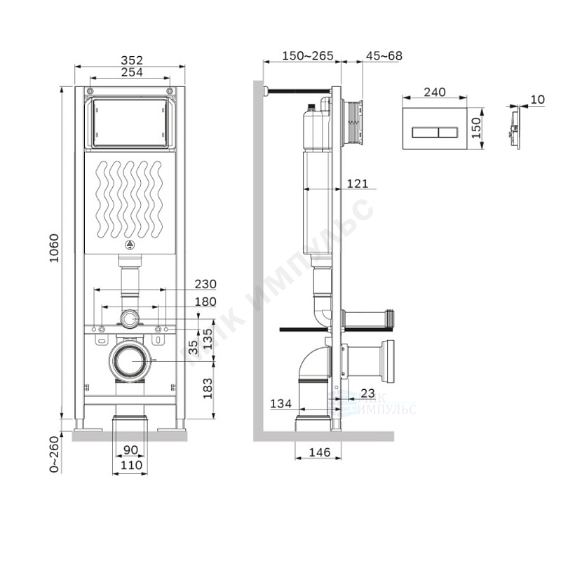 Инсталляция для подвесного унитаза с кнопкой смыва черная матовая ErgoFit ErgoFit M AM.PM I012711.0338