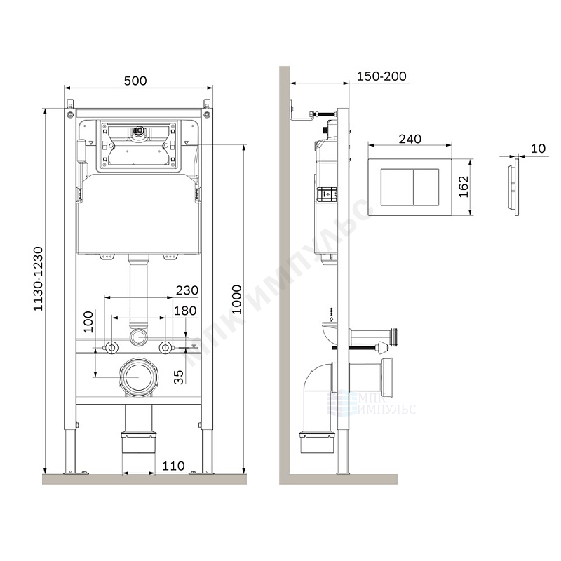 Инсталляция для подвесного унитаза с кнопкой смыва черная матовая PrimeFit PrimeFit S AM.PM I012709.0238