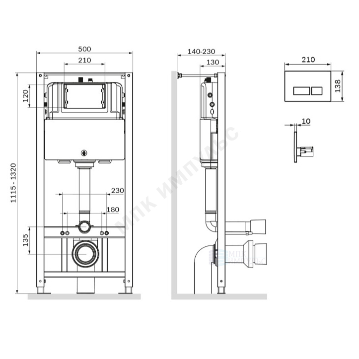 Инсталляция для подвесного унитаза с кнопкой смыва никель матовая Pro ProC L AM.PM I012704.9031