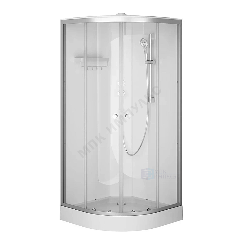 Кабина душевая X-Joy 900х900х2100 мм низкий поддон четверть круга прозрачное стекло алюминиевый профиль, хром матовый верхний душ AM.PM W94C-401-090MT