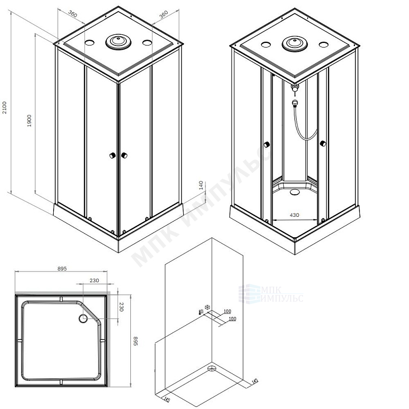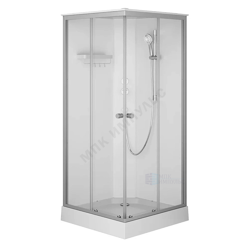 Кабина душевая X-Joy 900х900х2100 мм низкий поддон квадратная прозрачное стекло алюминиевый профиль, хром матовый в комплекте смеситель верхний душ AM.PM W94C-403-090MT