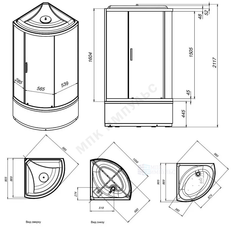 Кабина душевая X-Joy 900х900х2117 мм высокий поддон четверть круга прозрачное стекло алюминиевый профиль, белый верхний душ AM.PM W88C-401A-090WT