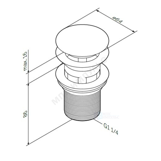 Клапан донный для умывальника с переливом 1 1/4″ слив «клик-клак», пробка D=64мм хром AM.PM F0700164