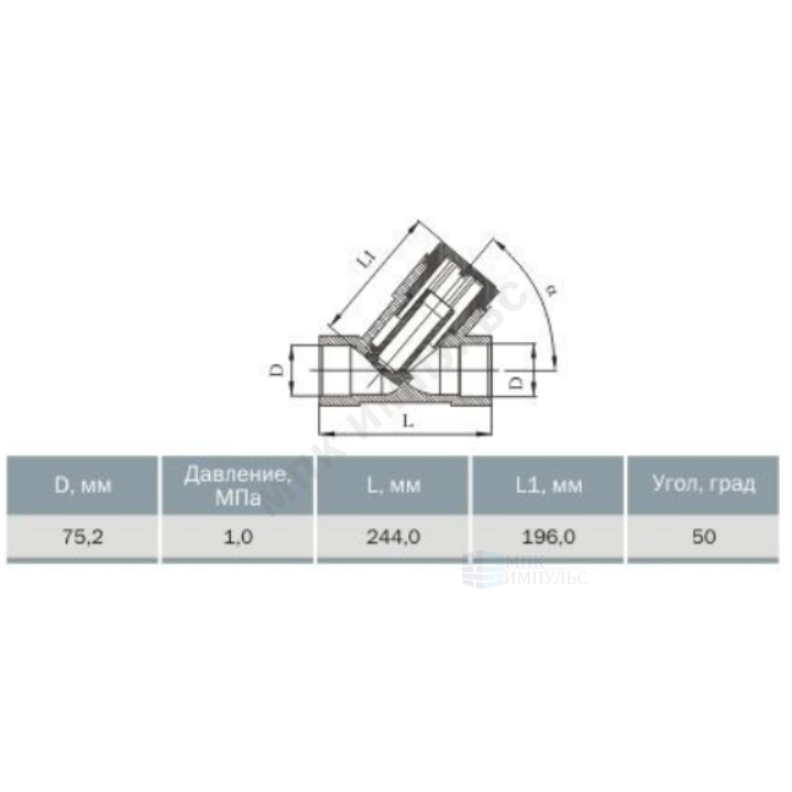 Клапан обратный ПВХ Дн 75 Ру10 под клеевое соединение Агригазполимер 206-070