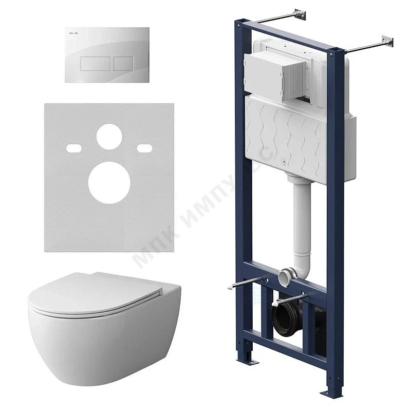 Комплект 4 в 1 инсталляция + кнопка смыва белая + унитаз подвесной сиденье дюропласт микролифт белый Awe AM.PM IS47001.111700