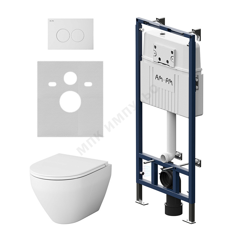 Комплект 4 в 1 инсталляция + кнопка смыва белая + унитаз подвесной сиденье дюропласт микролифт белый Like AM.PM IS100101.701700