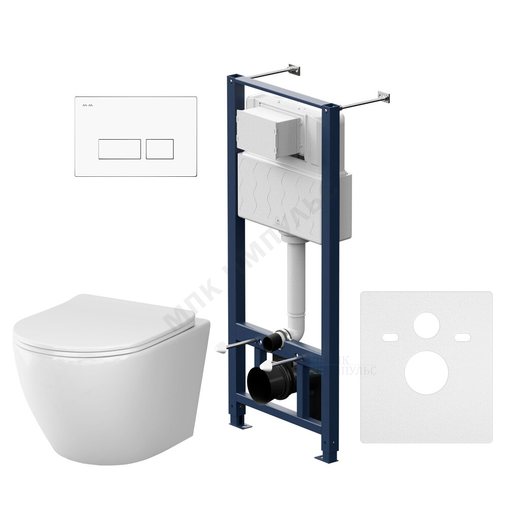 Комплект 4 в 1 инсталляция + кнопка смыва белая + унитаз подвесной сиденье дюропласт микролифт белый Like AM.PM IS47001.801900