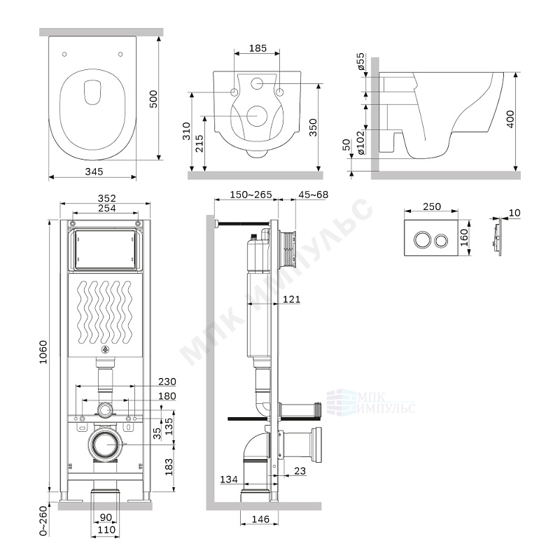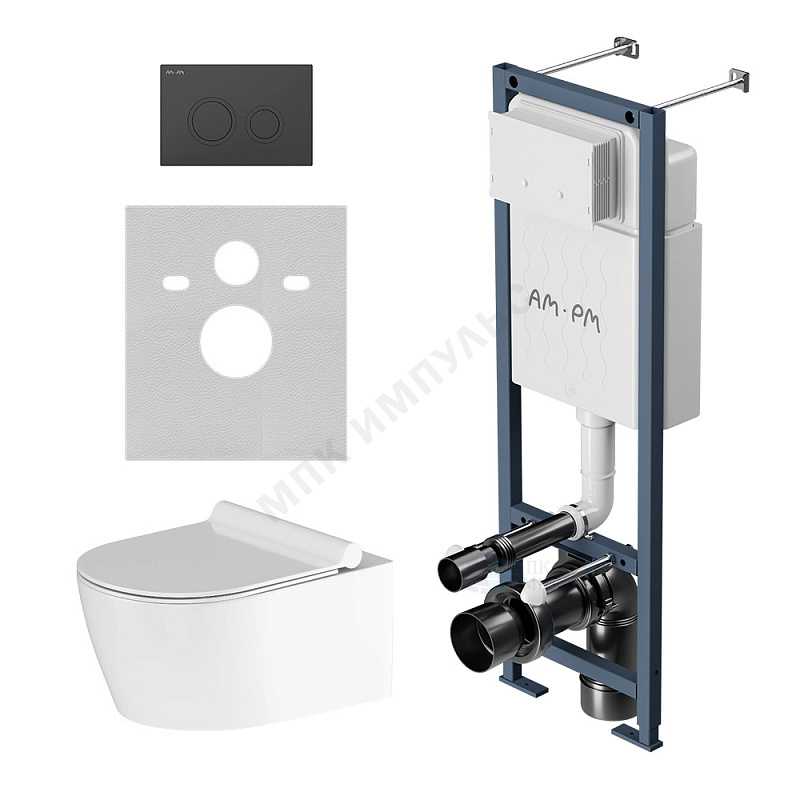Комплект 4 в 1 инсталляция + кнопка смыва черная матовая + унитаз подвесной сиденье дюропласт микролифт белый Jupiter Damixa IS110138.DX77C1700