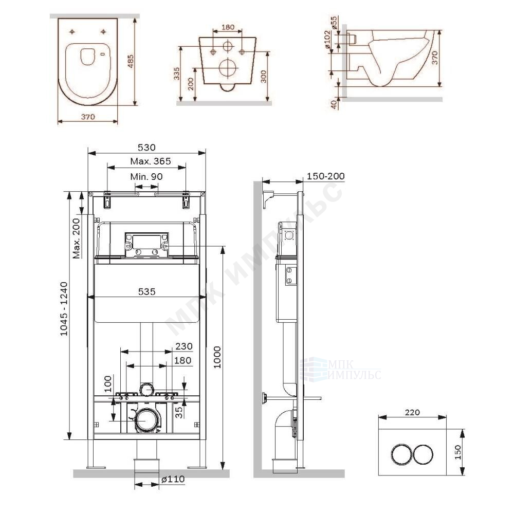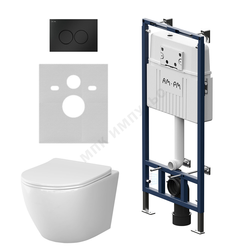 Комплект 4 в 1 инсталляция + кнопка смыва черная матовая + унитаз подвесной сиденье дюропласт микролифт белый Like AM.PM IS100138.801900