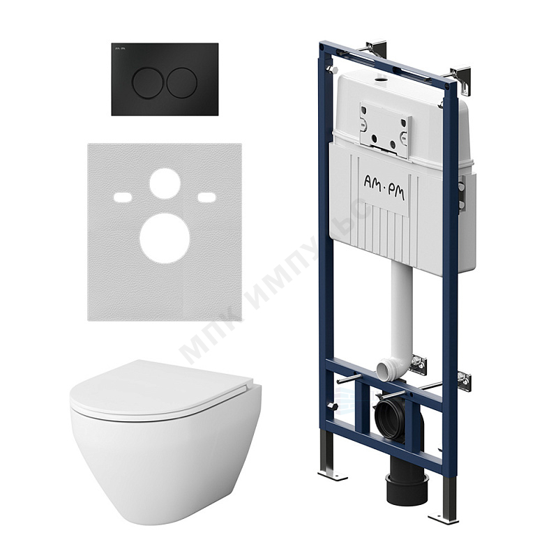 Комплект 4 в 1 инсталляция + кнопка смыва черная матовая + унитаз подвесной сиденье дюропласт микролифт белый Spirit V2.0 AM.PM IS100138.701700