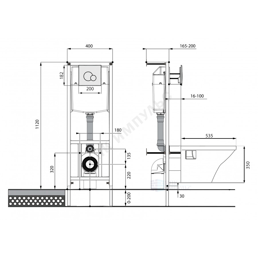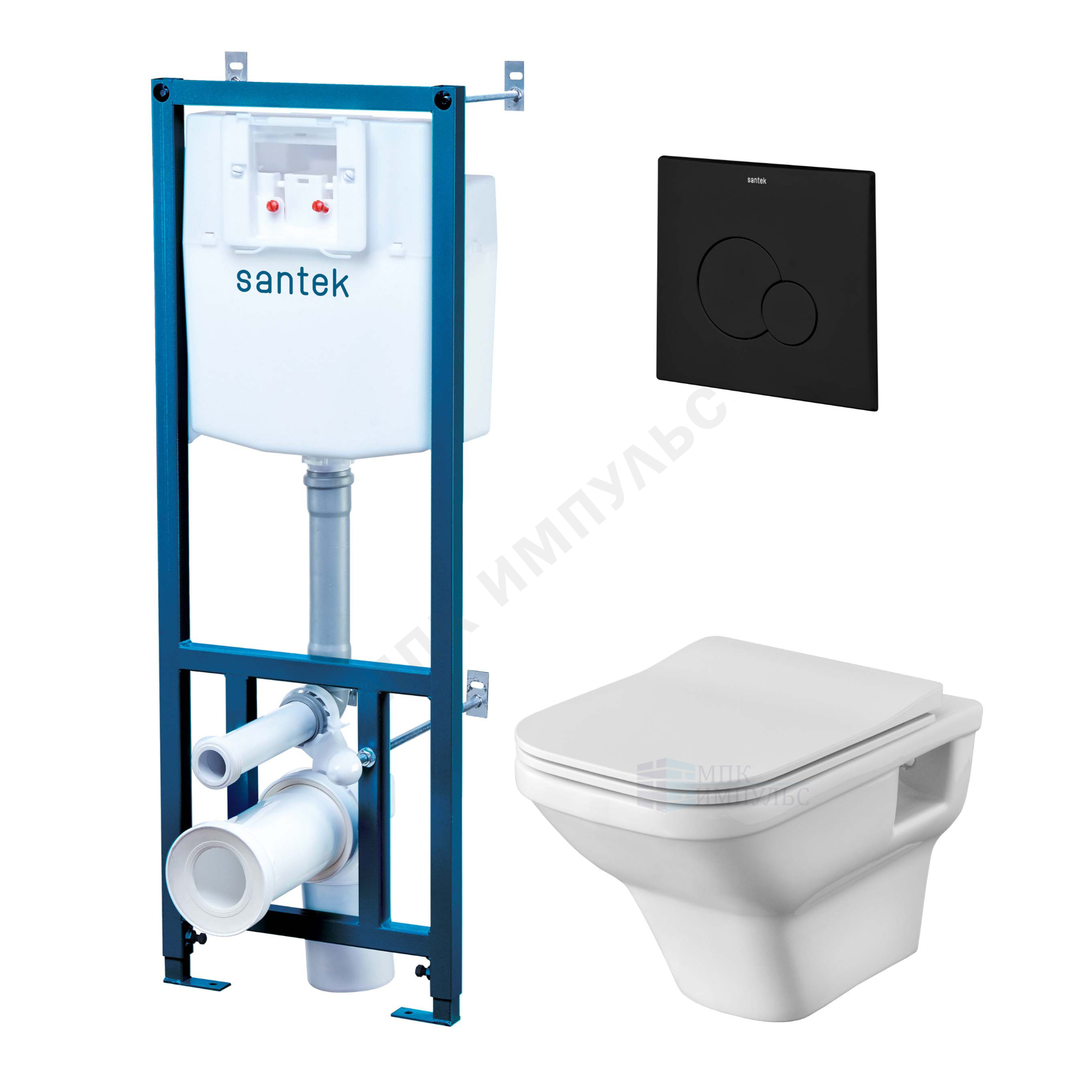 Комплект 4 в 1 инсталляция + кнопка смыва черная матовая + унитаз подвесной сиденье дюропласт микролифт Лайн Rimless Santek 1.WH50.1.778