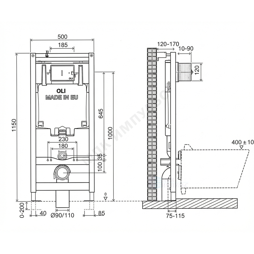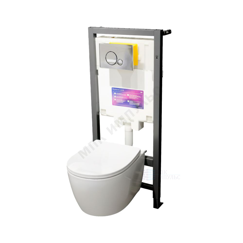 Комплект 4 в 1 инсталляция + кнопка смыва хром + унитаз подвесной сиденье дюропласт микролифт белый Art SLM Rimless Sanita Luxe Set.SL.Art.RML.SLM.DM/OLI.SM.CH.G.R2