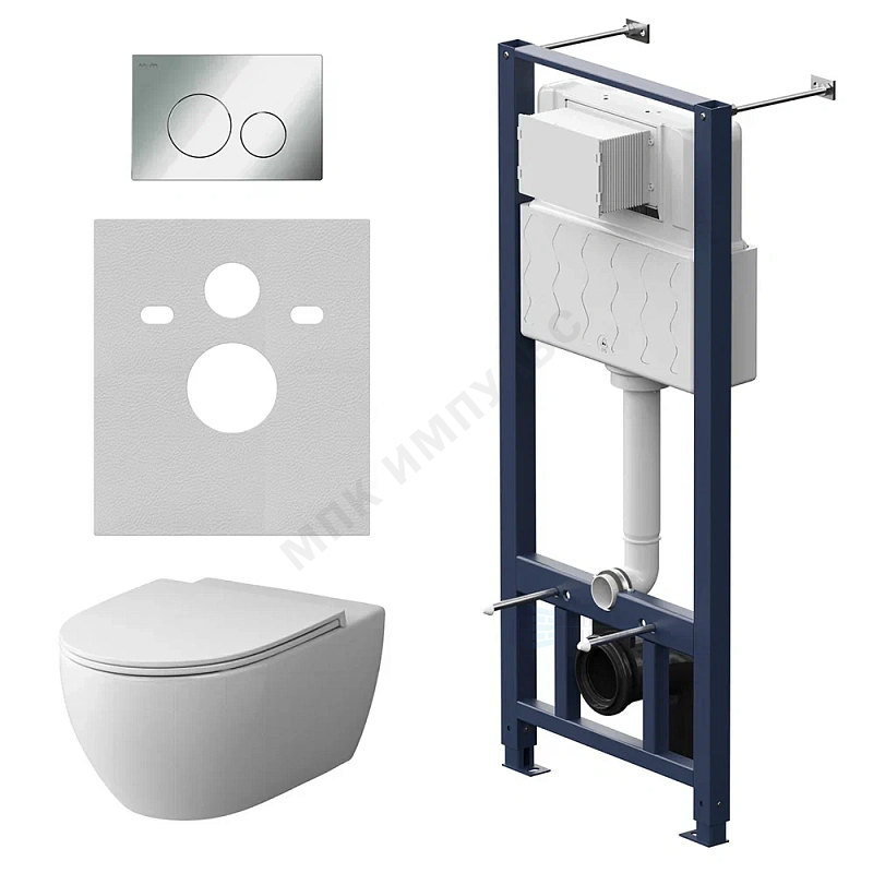Комплект 4 в 1 инсталляция + кнопка смыва хром + унитаз подвесной сиденье дюропласт микролифт белый Awe AM.PM IS49051.111700