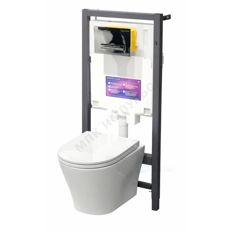 Комплект 4 в 1 инсталляция + кнопка смыва хром + унитаз подвесной сиденье дюропласт микролифт белый Breeze Rimless Sanita Luxe Set.SL.Breeze.RML.DM/OLI.SM.CH.G.S2
