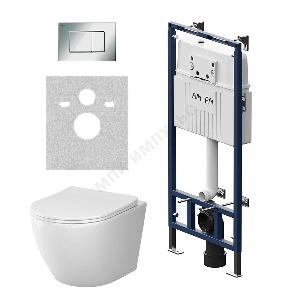 Комплект 4 в 1 инсталляция + кнопка смыва хром + унитаз подвесной сиденье дюропласт микролифт белый Like AM.PM IS100251.801900