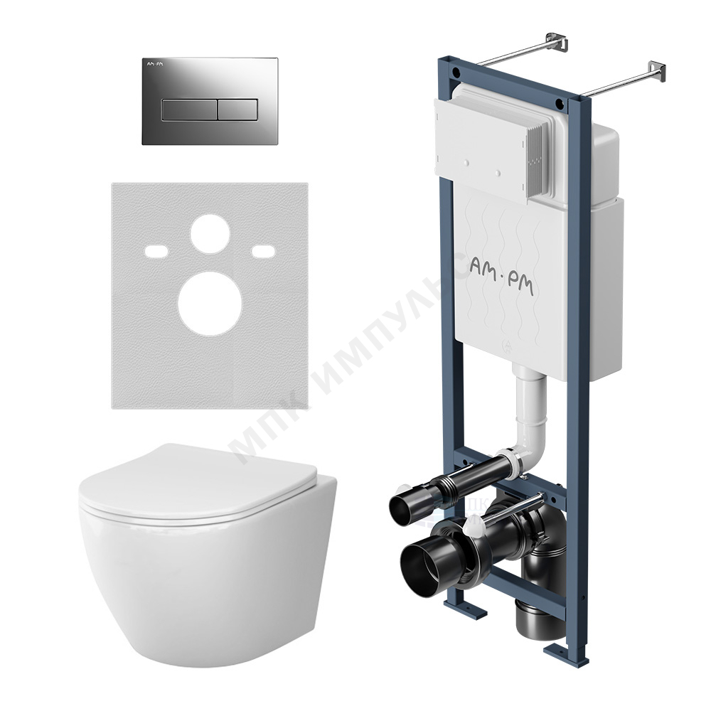 Комплект 4 в 1 инсталляция + кнопка смыва хром + унитаз подвесной сиденье дюропласт микролифт белый Like AM.PM IS110351.801900