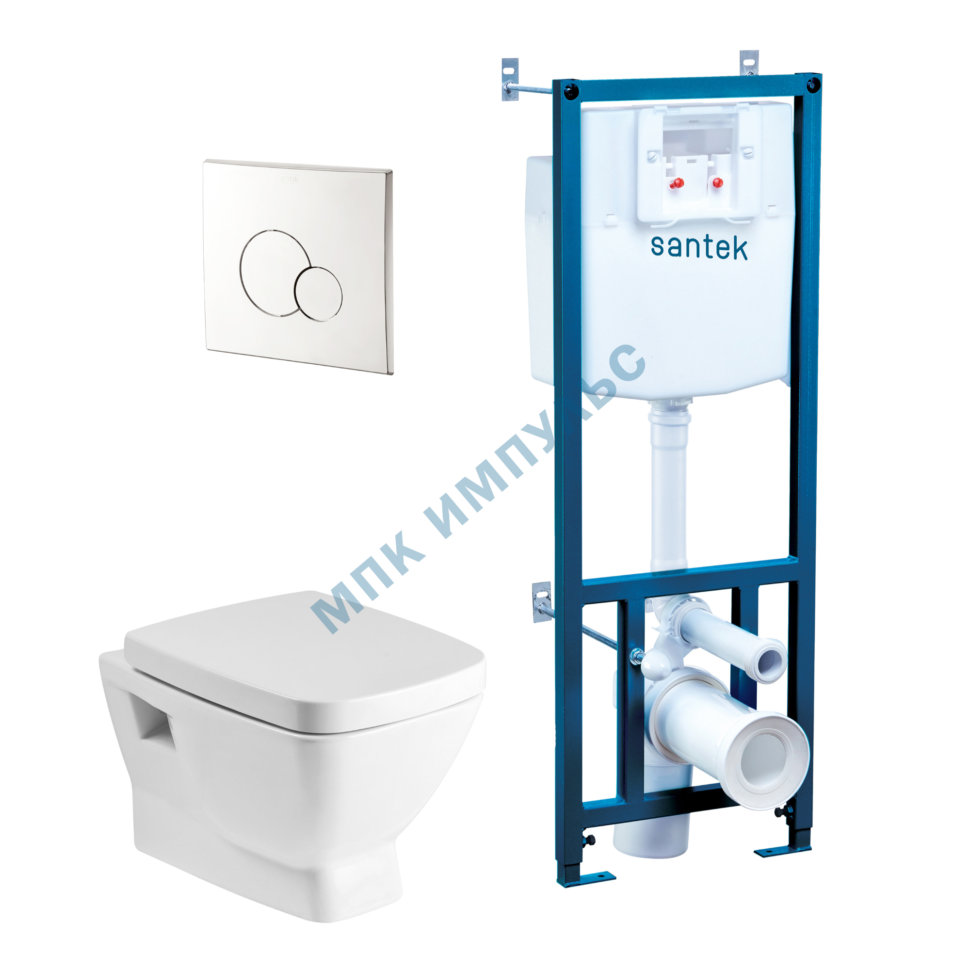 Комплект 4 в 1 инсталляция + кнопка смыва хром + унитаз подвесной сиденье дюропласт микролифт Нео Santek 1.WH50.1.543