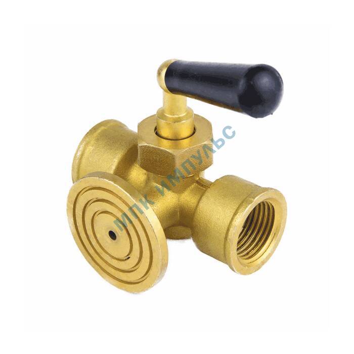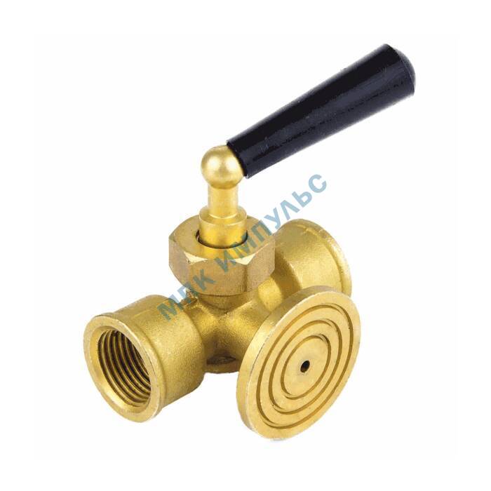 Кран для манометра 3-ходовой латунь 1063 Ду 15 Ру16 ВР/ВР G1/2″ с рукояткой с фланцем Aquasfera 1063-01