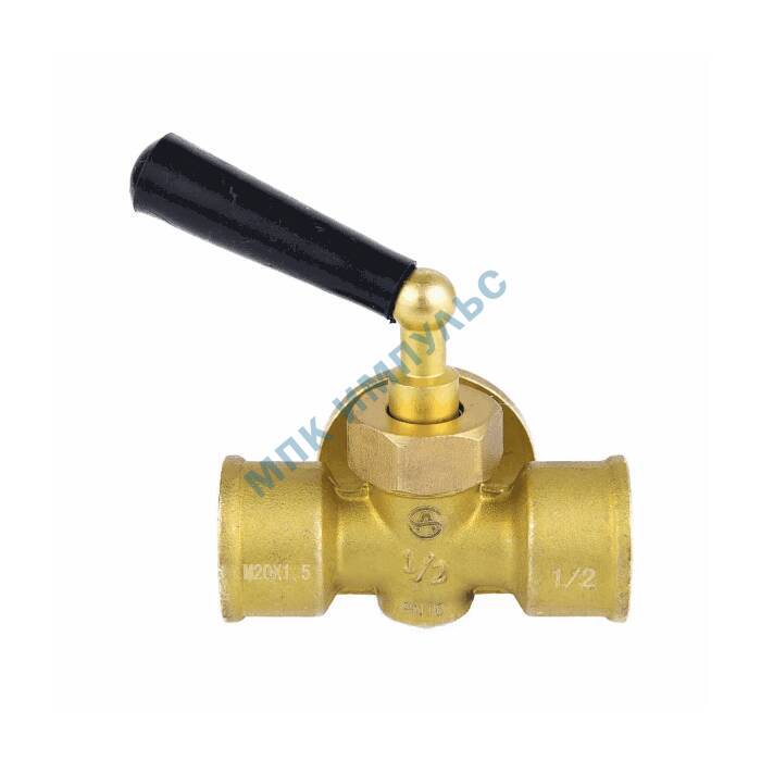 Кран для манометра 3-ходовой латунь 1064 Ду 15 Ру16 ВР/ВР G1/2″-М20х1,5 с рукояткой с фланцем Aquasfera 1064-01