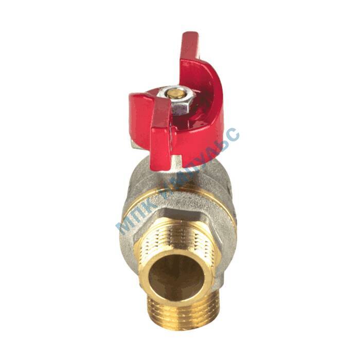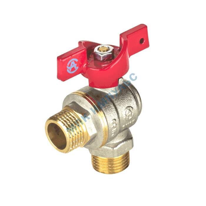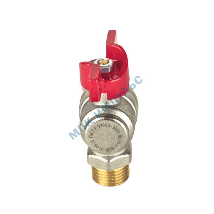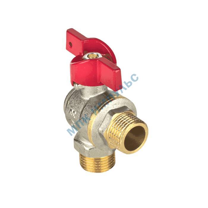 Кран шаровой латунь никель угловой 1010 Euro Ду 15 Ру40 НР полнопроходной бабочка красная Aquasfera 1010-01