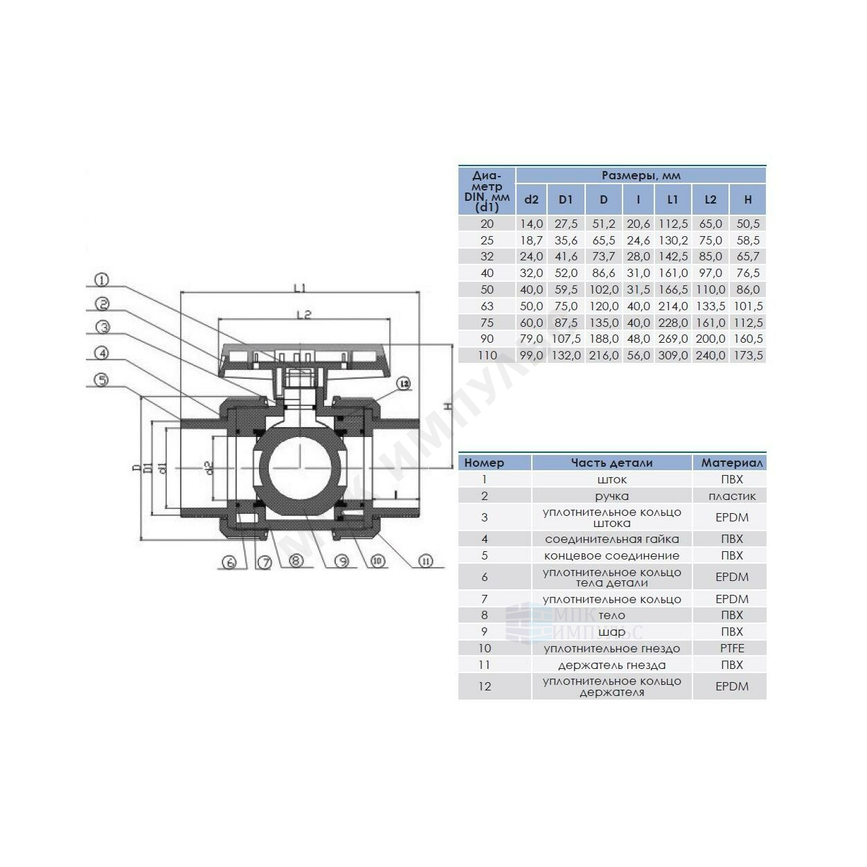 Кран шаровой НПВХ Дн 75 (Ду 65) Ру16 напорный под клеевое соединение (уплотнение TPV, остальное EPDM) с муфтовым окончанием Aquaviva AQVBVD075