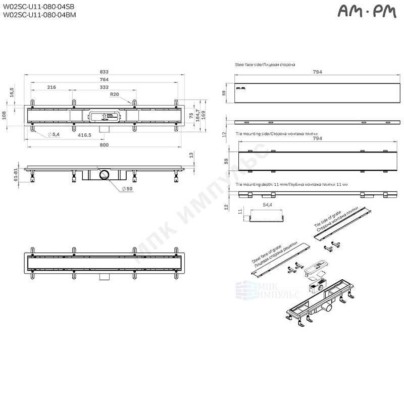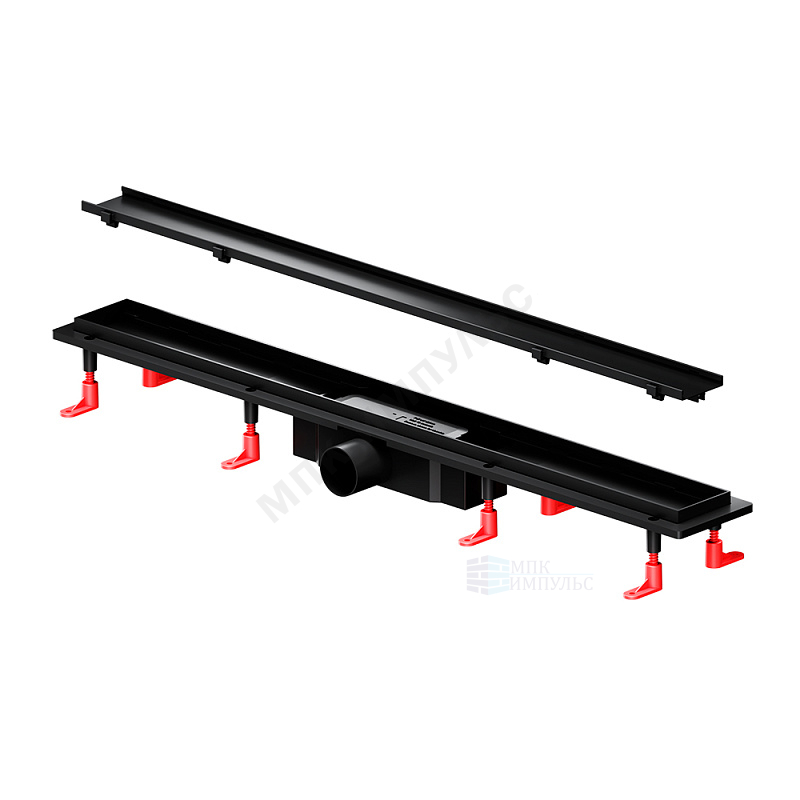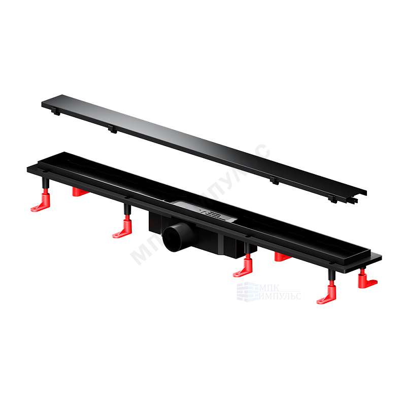 Лоток душевой с гидрозатвором+механический сухой затвор Дн 50 794х59мм решетка нержавеющая сталь, под плитку черная матовая горизонтальный выпуск PrimeFlow AM.PM W02SC-U11-080-04BM