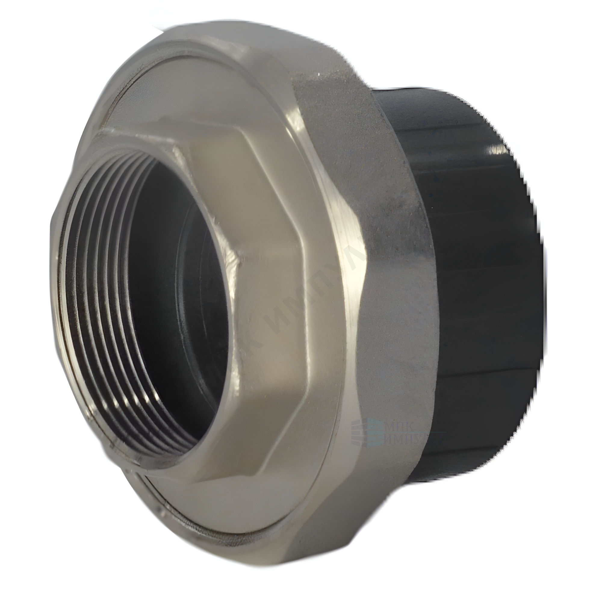 Муфта НПВХ разъемная Дн 50х1 1/2″ серая ВР под клеевое соединение Aquaviva AQVBBD50F