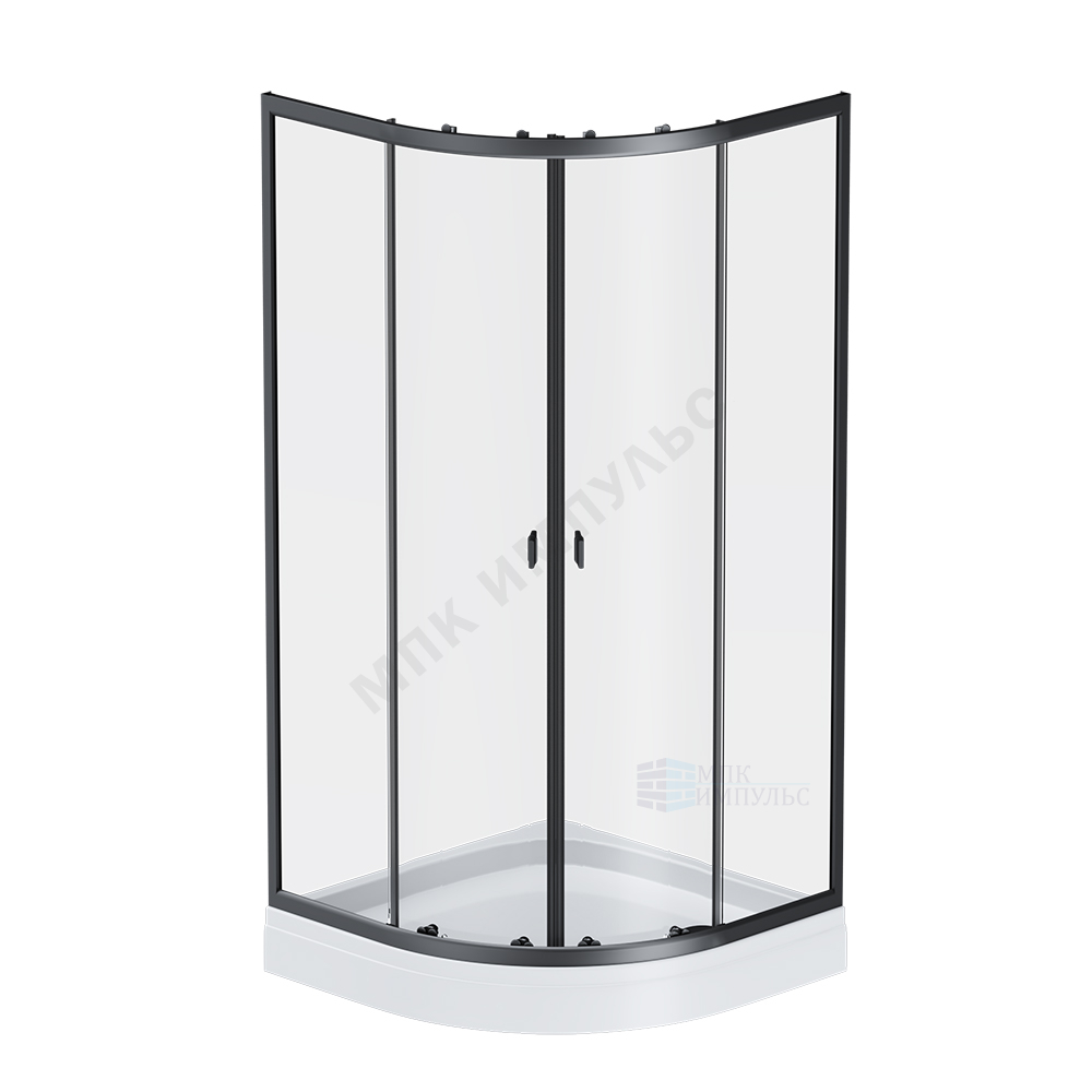 Ограждение душевое X-Joy 900х900х1800 мм средний поддон четверть круга прозрачное стекло алюминиевый профиль, черный матовый AM.PM W88E-205-090BT64