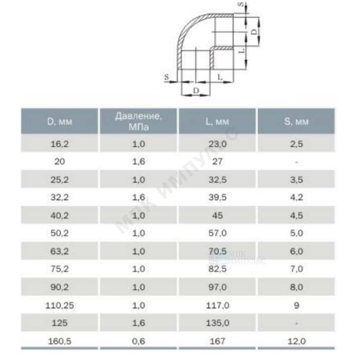 Отвод НПВХ Дн 160х90гр Ру10 под клеевое соединение Агригазполимер 206-027