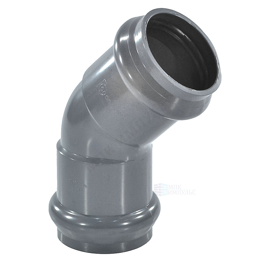 Отвод НПВХ SDR26 Дн 110х45гр Ру10 серый напорный двухраструбный под соединение с уплотнительным кольцом в/к Aquaviva AQV103110