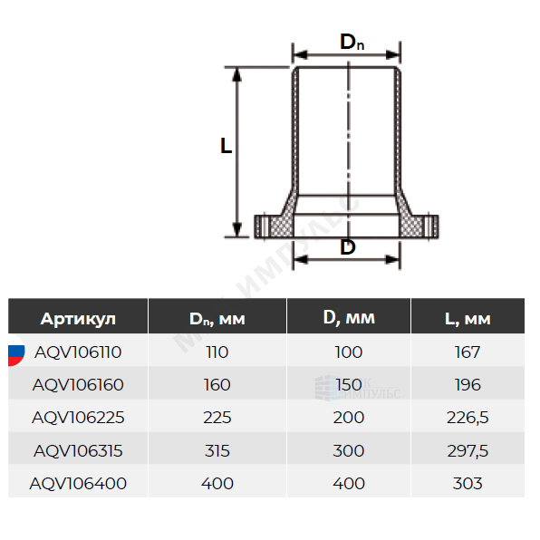 Патрубок НПВХ SDR26 Дн 160х150 Ру10 серый напорный гладкий фланец НПВХ Aquaviva AQV106160