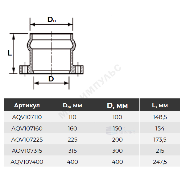 Патрубок НПВХ SDR26 Дн 225х200 Ру10 серый напорный раструбный под соединение с уплотнительным кольцом фланец НПВХ Aquaviva AQV107225