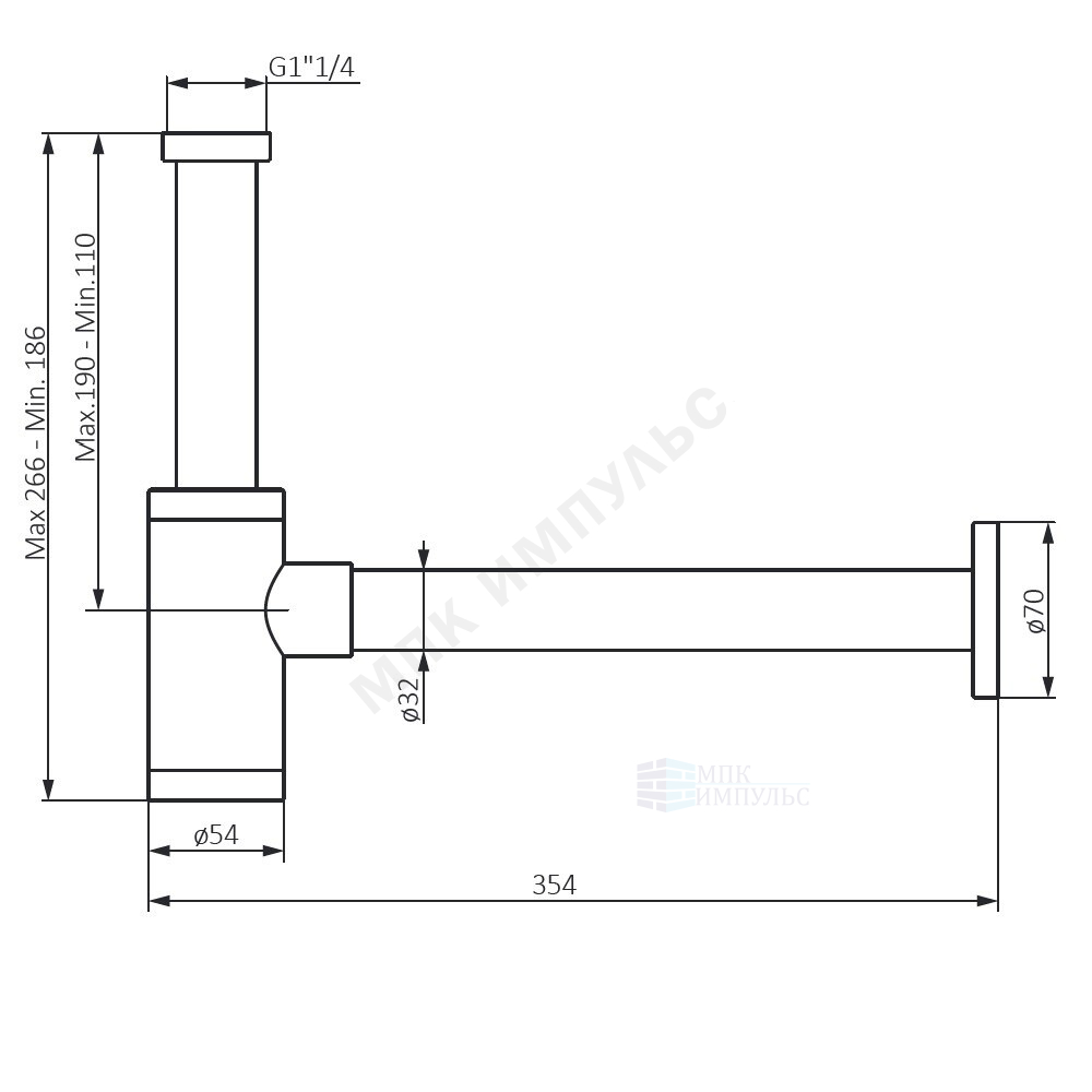 Сифон для умывальника бутылочный латунь 1 1/4″x32 с прямой трубкой 32 хром без выпуска Option Damixa 210800000