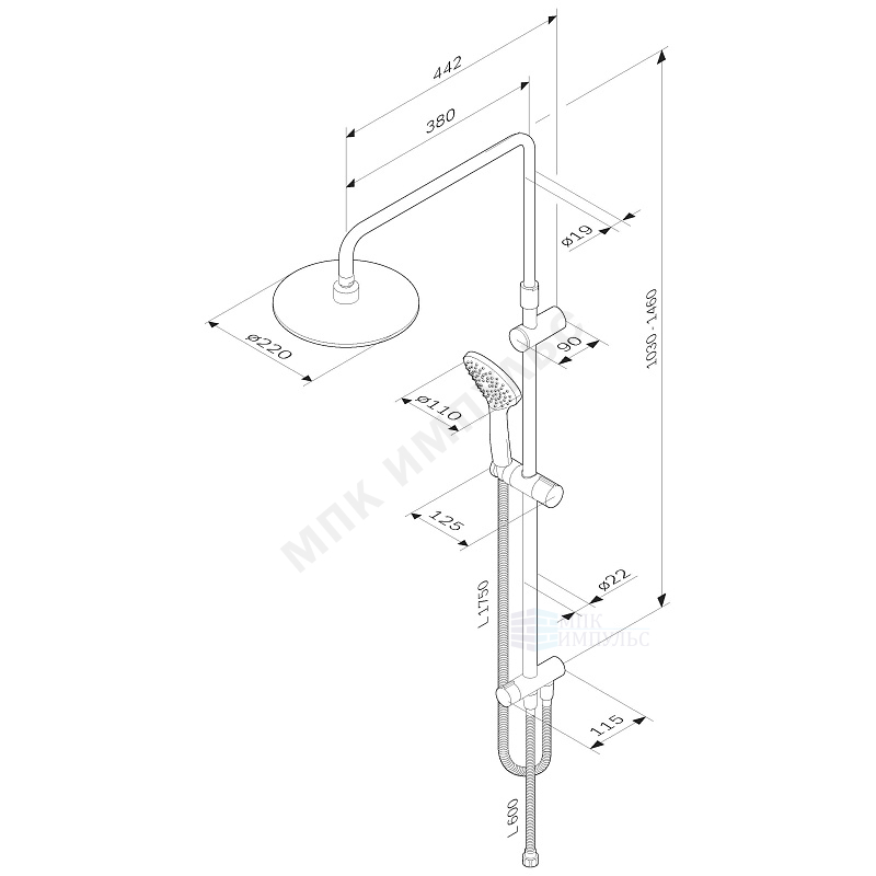 Система душевая без смесителя черный Gem AM.PM F0790022