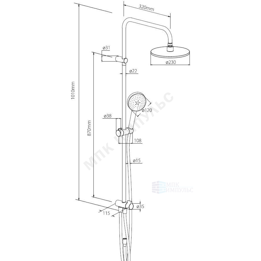 Система душевая без смесителя черный Jupiter Damixa 977000300