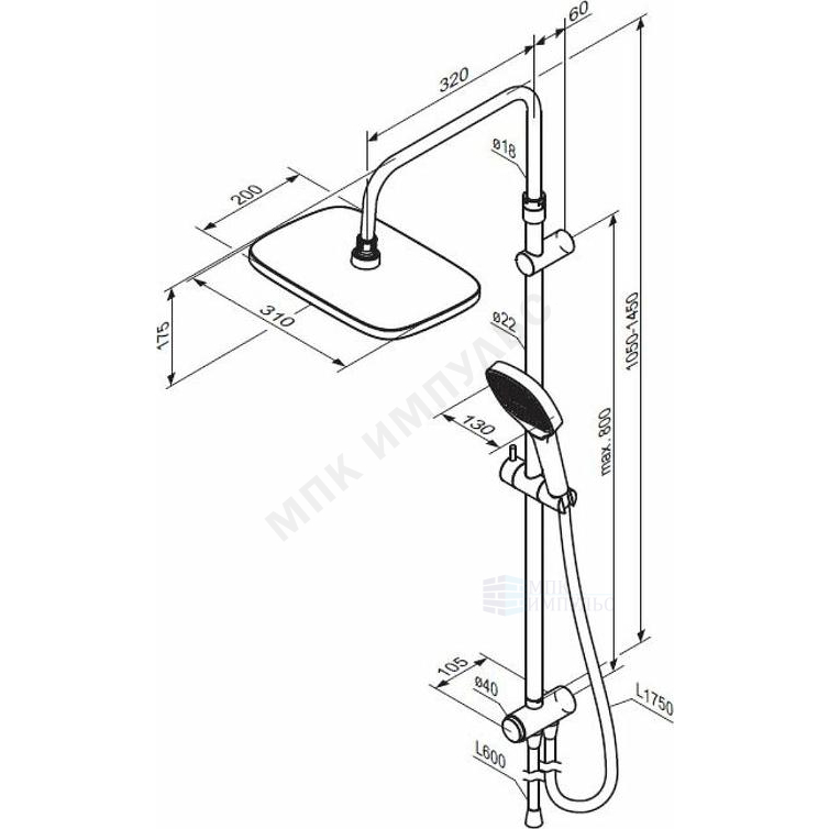 Система душевая без смесителя черный Merkur Damixa 940000300