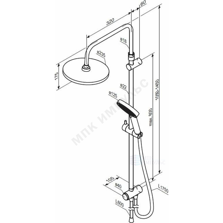 Система душевая без смесителя хром Apollo Damixa 947000000