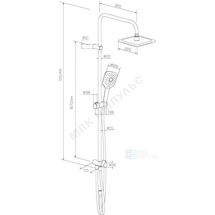 Система душевая без смесителя хром Eclipse Damixa 931000000