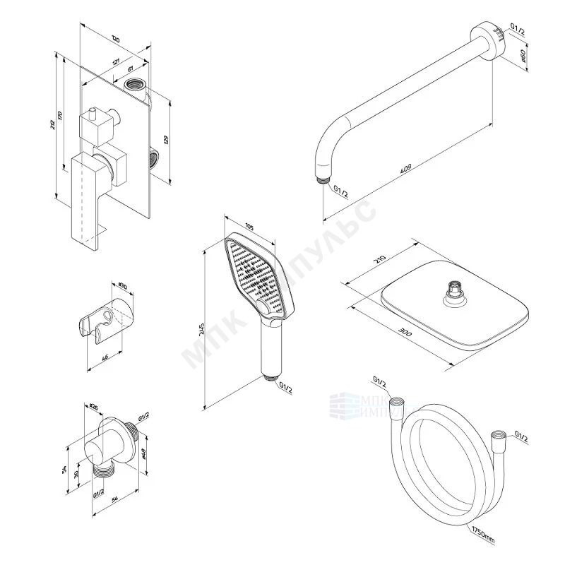 Система душевая черный Gala Damixa 953520300