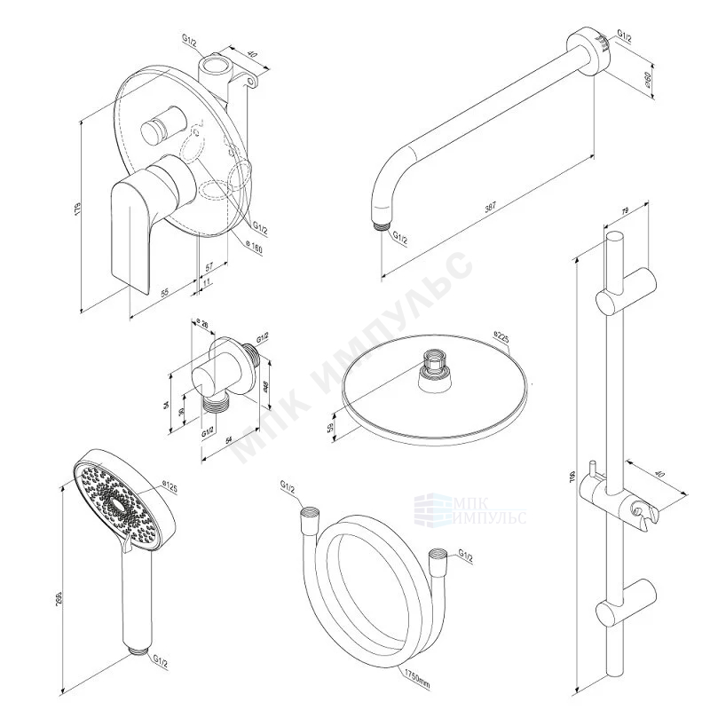 Система душевая хром Apollo Damixa 947530000