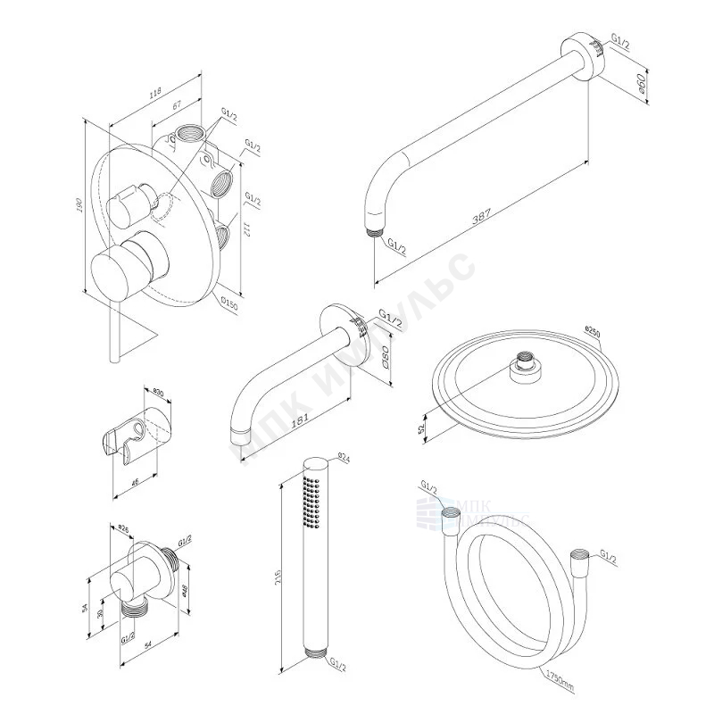 Система душевая хром Scandinavian Pure Damixa 936510000