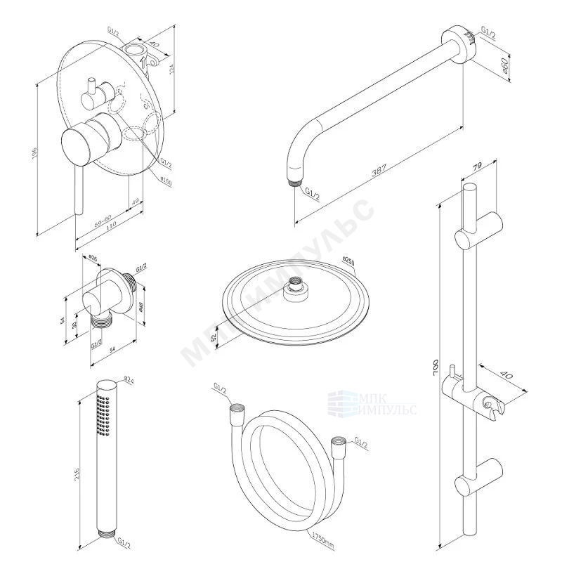 Система душевая хром Scandinavian Pure Damixa 936530000