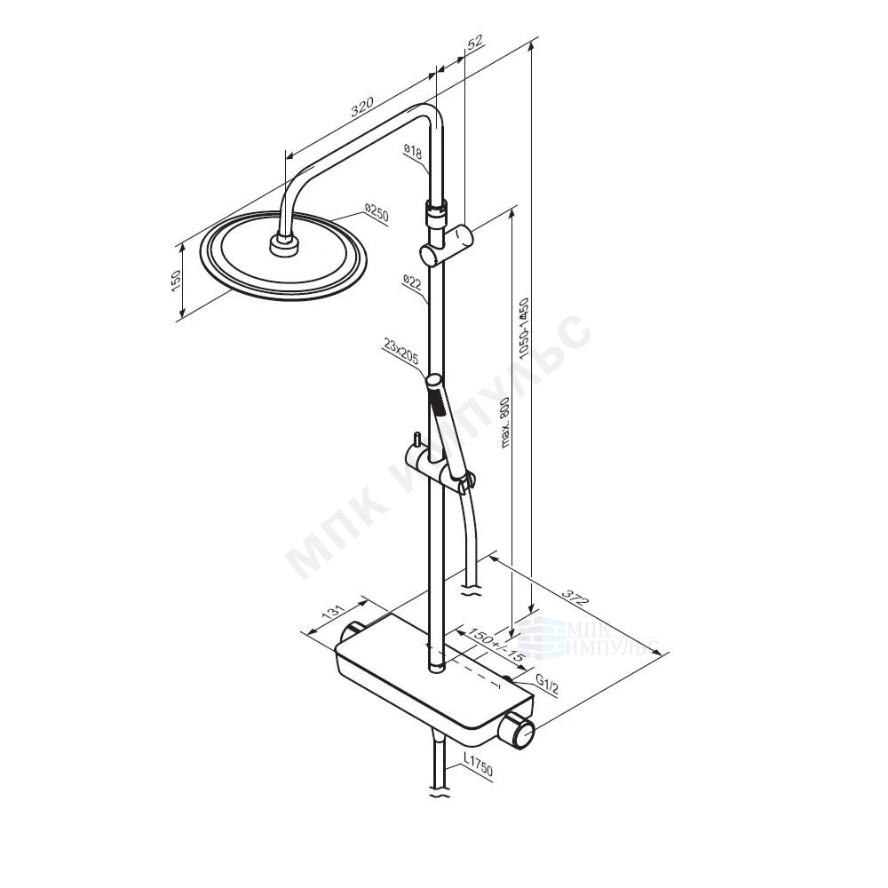 Система душевая с одноручным смесителем черный Scandinavian Pure Damixa 936780300