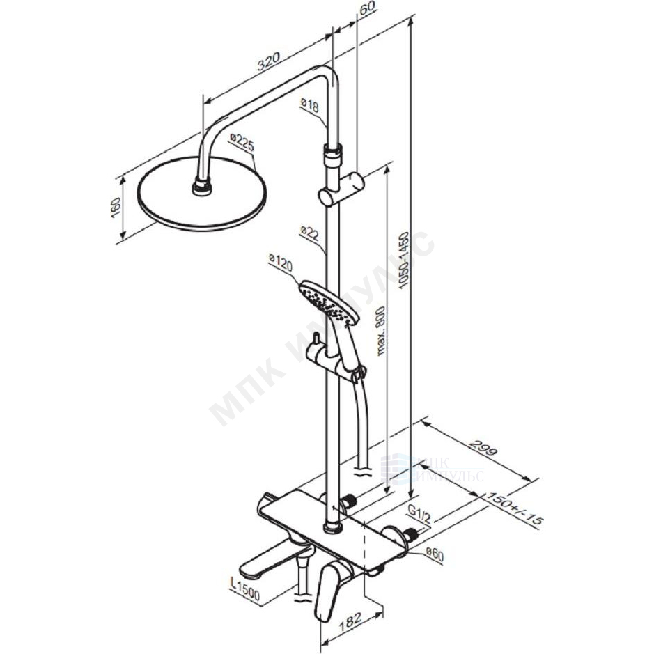 Система душевая с одноручным смесителем хром Jupiter Damixa 977730000