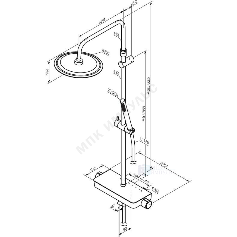 Система душевая с одноручным смесителем хром Scandinavian Pure Damixa 936730000
