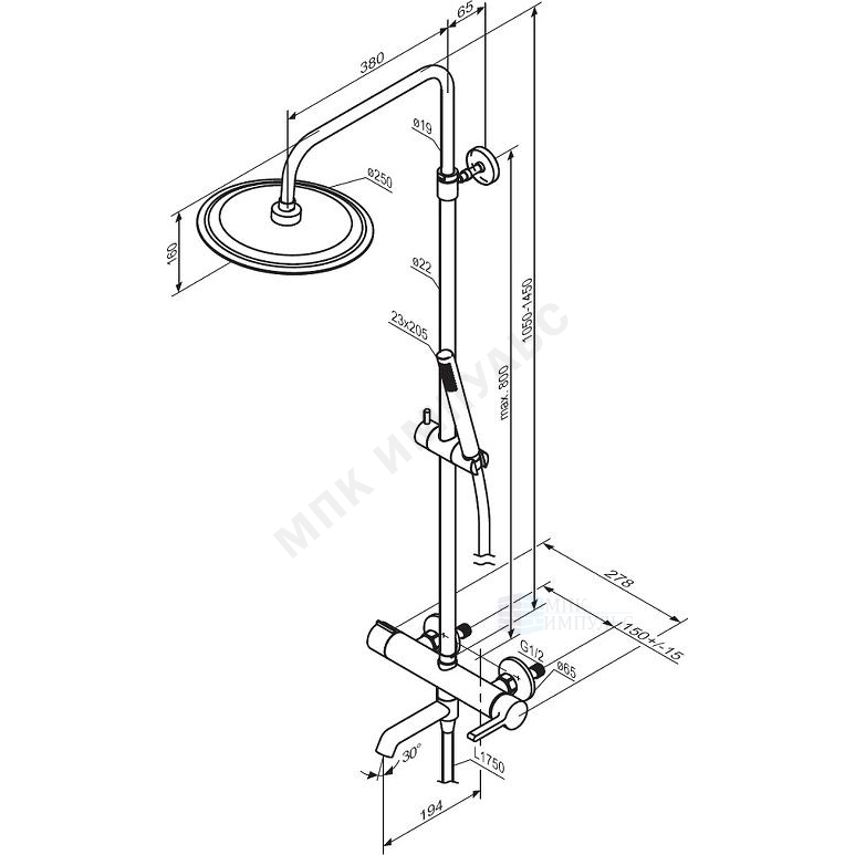 Система душевая с одноручным смесителем хром Scandinavian Pure Damixa 936740000