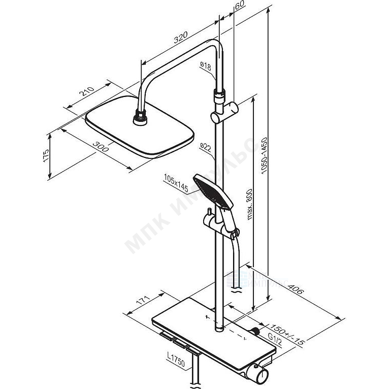 Система душевая с термостатическим смесителем черный Gala Damixa 953760300