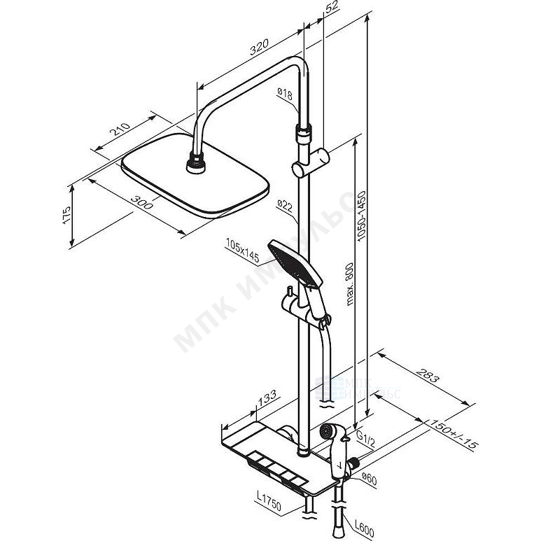 Система душевая с термостатическим смесителем черный Gala Damixa 953770300